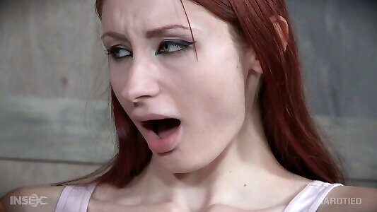 Slutty dominatrix in stockings corset Eleise de Lacy puts on strap dildo and penalizes ample boy