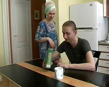 Mother Chubby phat mounds milf housewife lets junior man come on her udders