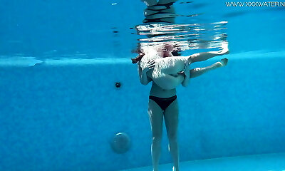 Jessica and Lindsay nude swimming in the pool